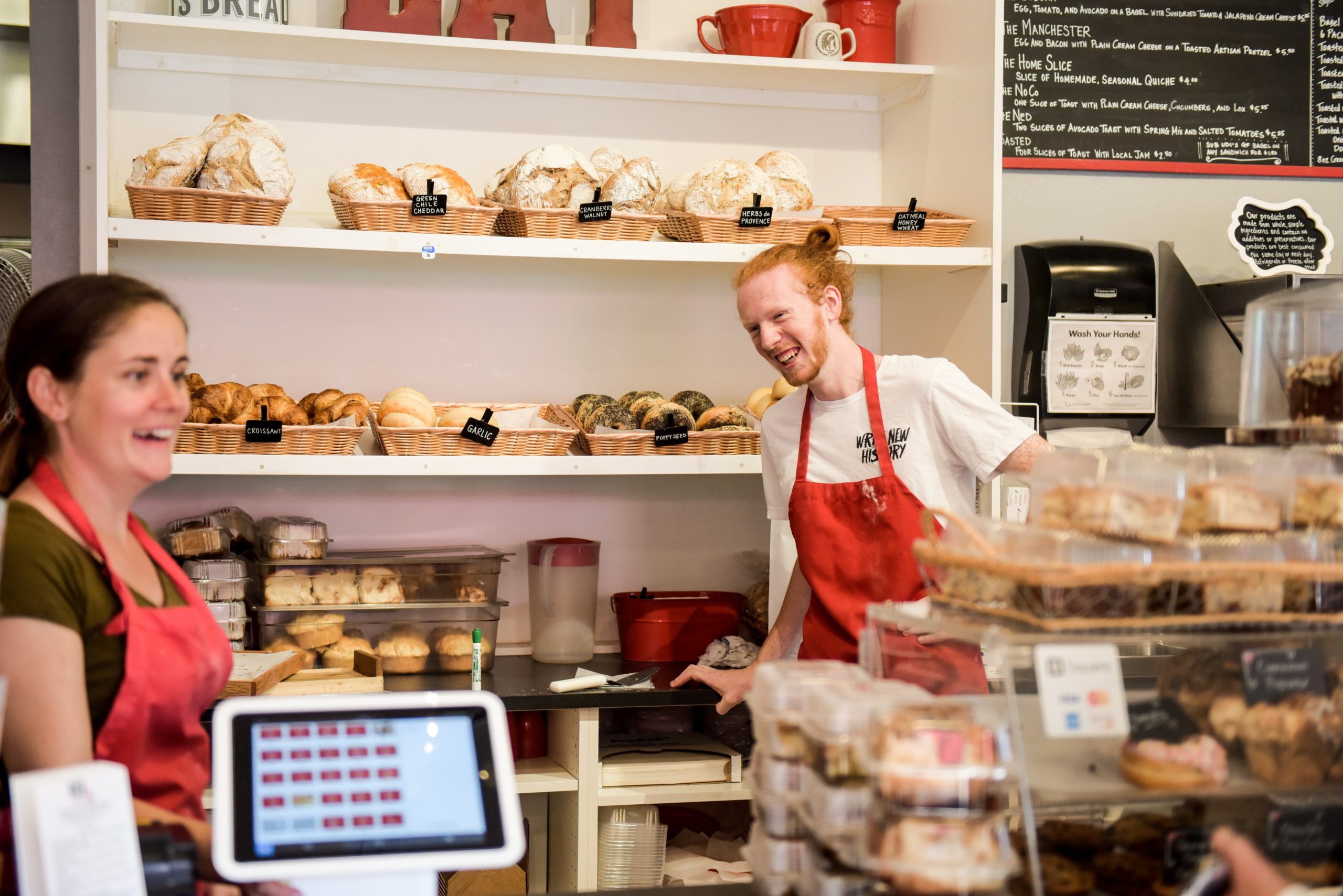 It was a round-the-clock venture for the first couple of years. We decided to start small with our menu and focus on what we did well: bread and bagels and make a menu to highlight these, so breakfast and lunch sandwiches. We slowly added more pastries and specialty items like soup. We partnered with Redemption Road Coffee started with brewed coffees and expanded into offering a full coffee menu.