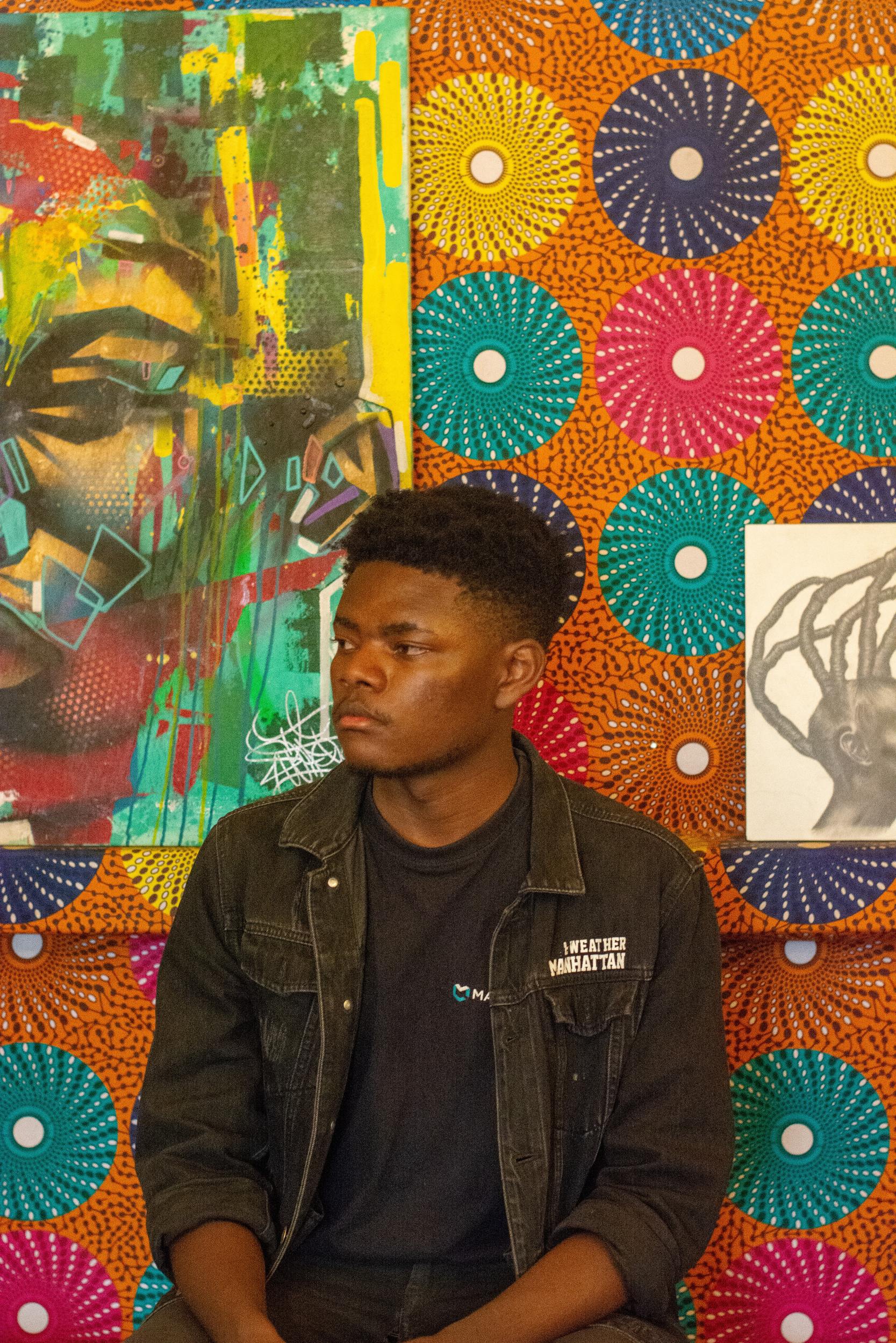 For as long as I could remember ive always been an artist, as a toddler enjoying coloring shapes and patterns with crayons, as a teen keeping a drawing book and filling it with drawings of all the popular celebrities,cartoons and sportsmen,and now as young man creating beautiful works of art on canvas, dare i say,it was meant for this. I’ve always seen art as a tool of self expression and in my opinion God’s best gift to humanity.I love art,i dont ever see myself doing anything else anylife its either,art or art.I grew up in Nairobi,capital city of Kenya.Nairobi is a very artsy city,full of colors shapes sounds movements a city bustling with life.Countless creatives have either come to or come from Nairobi and made names for themselves some even gaining international acclaim.Growing up i really looked up to Patrick Mukabi,one of the most famous Kenyan Painters,he used to have a segment in a kids TV show called “Art Zone” where he would either paint draw or make some amazing crafts and i was there for it all,i made art along side him on the other side of the screen,later on in life,I was fortunate enough to work under his mentorship in his community studio for 3 months in 2019. Most of my schoolbooks were filled with scribbles,doodles and drawings and my most favorite activity in class is when there was a diagram to draw as part of our activities.It made me so happy when my classmates referred to me as the “class artist” and when the teacher would call me to help in drawing an image on the board relevant to the lesson,people even paid me to make drawings for them come to think of it.All during highschool my mind was set on being a full time artist even though at the time i had no idea what that looked like,i had seen artists all over,some who took their practice overseas and thrived and came back and now were seen as icons but i didnt know how to apply that to me.I went to art school in Buruburu ,one of Nairobi’s historically artsy neighbors,walking in Buruburu is like walking in an open air art gallery,there are colorful grafittis adorning walls all over,public transport pimped with bold artworks and loud music (google “Matatu culture in Nairobi” youll be amazed) and beautiful galleries and art spaces.