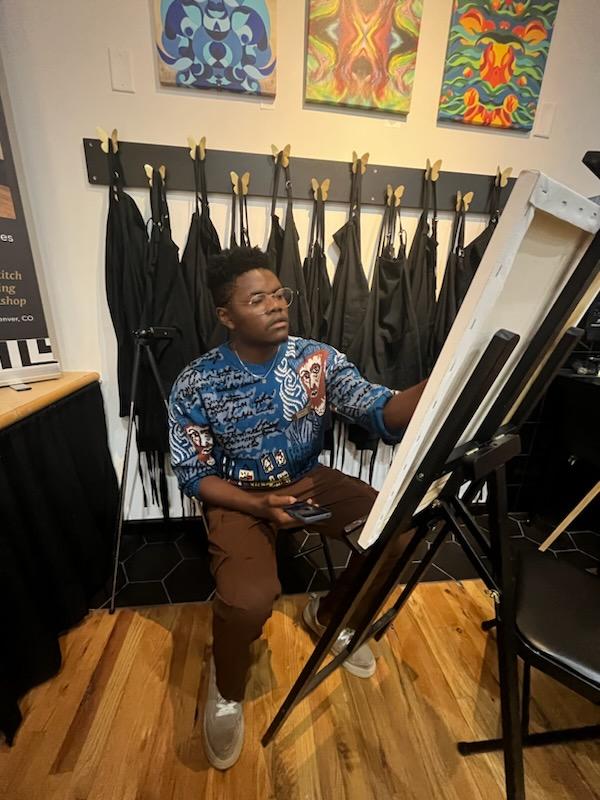 My art college, BIFA (Buruburu Institute of Fine Arts) is the finest art institution in Kenya and it was a priviledge to graduate from there,but even still i dont feel like it gave me what i truly needed,art schools tend to have one particular style that they’d want all people to emulate and i just wasnt feeling that.The years that followed really shaped me as an artist cause they made go on an internal journey to discover what i truly wanted as an artist.I experimented alot,watched Youtube videos,waste lots of precious paint on practise but in the end i can say it payed off.I came to learn soon that no one is really coming to save me so i have to put in the work.Many artists wait to be discovered by galleries and collectors so they never try do anything to get themselves out. I knew that it would be some time before i get gallery shows atleast in Nairobi and so i had my own ways of creating visibility for my work,having a table/stand in community events really helped,as i made connections and sold several pieces in the process. Eventually i was signed by a gallery (Usanii Mashariki Gallery) and that was the happiest moment of my career,there i was in my first ever group show and later i sold some pieces too.Ive had to redefine myself so many times in my art career and moving to the US was one of them,i literally had to restart everything from scratch,in Nairobi i had community,friends an upcoming career but coming to Denver i had to leave all that behind.The first few months were tough as I couldnt do much artistically,but with the help of friends i was taken on a visit first to a friend’s home studio (Paul Valdez)then to Recreative Denver then to the Denver Museum and there a desire was reborn.I knew i wanted to follow my passion,I started creating again and 3 months later got my first oportunity to be in a group exhibition in RemainReal gallery and as they say the rest is history.Being in that show helped me build community that i so much needed.Since then ive sold several paintings been part of exhibitions,have media features,taught in a summer camp in Alburqueque for two weeks and started my own art community called “Sketch Party” which happens once every month