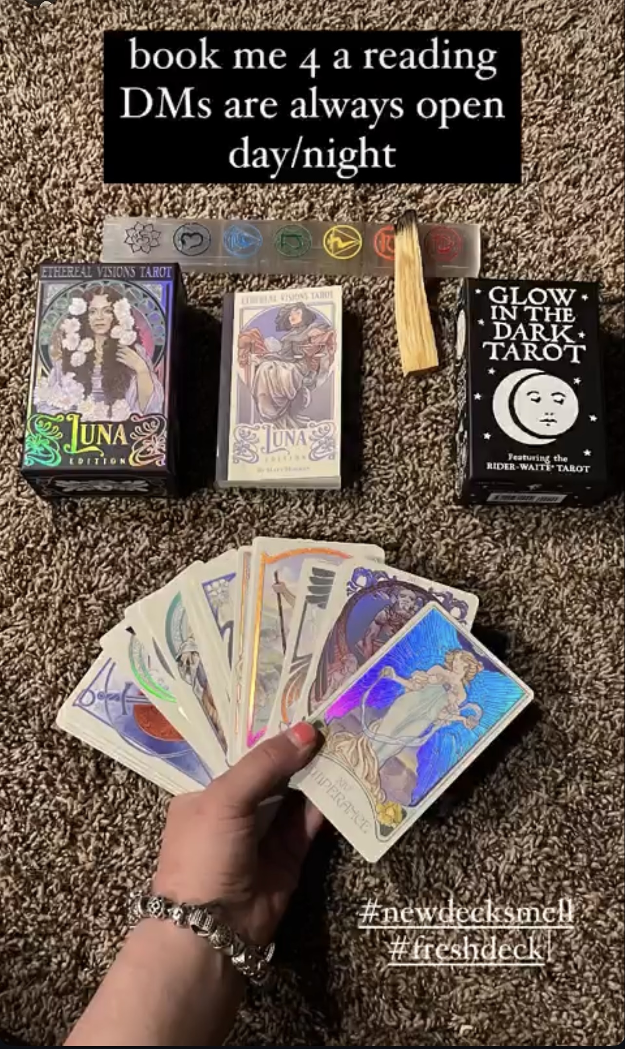 Currently I offer personal tarot readings in regards to love, future & even career. I offer advice and a listening ear for anyone who is interested in expanding their mindset to the worlds & realities around us.