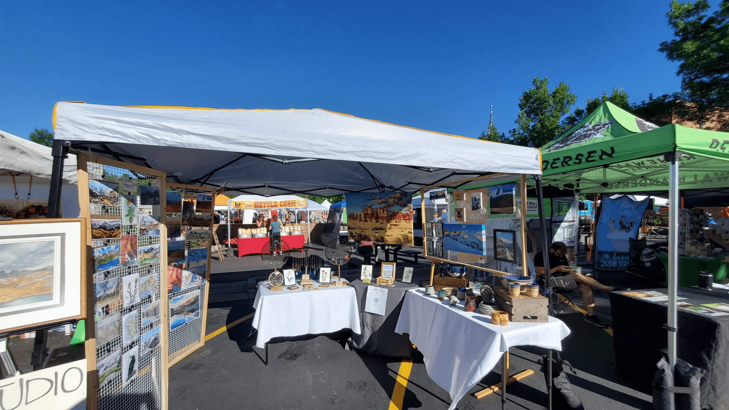 I’ve always love art and creating, ever since I was young. I maintained creative pursuits even as I pursued a degree in Wildlife Biology and a Master’s Certificate in Geographic Information Systems. Although I never rule out taking on new mediums and techniques, I have (mostly) distilled my creative pursuits to acrylic and watercolor painting, pottery, and jewelry making. After years of amassing skills, materials, and many many finished works, I finally took the leap to make my art an “official” side career. Now, I sell my work online, at farmer’s markets, and in local galleries as well as teaching painting classes.