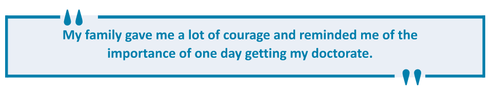 I am very honored to have my family by my side. They have been very supportive of my goals and have celebrated every success with me. The work I am currently engaged in continues to give me hope and inspire me to continue as a teacher, health worker, and community servant.