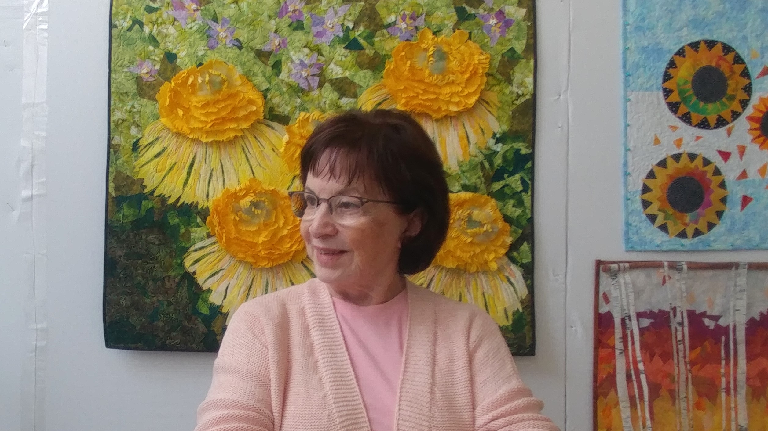Presently I am known for the floating art quilts, art vessels and masterful fabric flowers. I’m proud of my teaching techniques and seeing students take my ideas to another level.