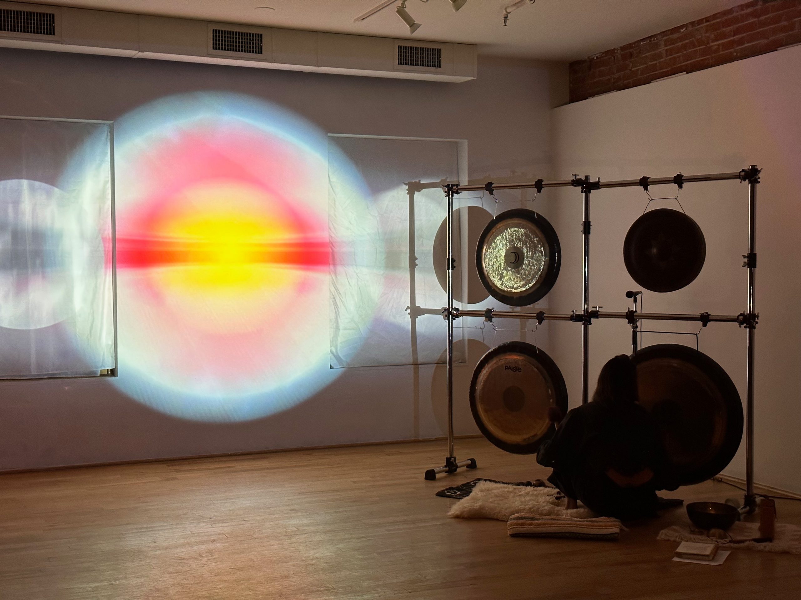 I have been a big music lover since I was a kid, and interested in the technology behind it. I grew up in Dayton, Ohio. When I was young I found myself making videos with the family VHS camera, and helping family friends set up their stereos and surround sound systems. I even got jobs recording and editing weddings. I used two VHS decks to edit, and eventually got a membership at the local cable council so I could use their editing equipment. When I got to high school I was was lucky that they had a two year video and radio production program which included advanced classes at a local community college. In the programed I gained enough skills to get a job at a local television news station. I worked there for five years, while also DJ’ing and doing freelance audio and video work. My side DJ career led me to taking over for a sound engineer at a music venue when he moved out of town. I enjoyed it so much that I quit my job at the news station to work there, and supplement with freelance work for various organizations and local AV event companies. After about seven years of this, I gained enough skill skills and experience to start working for larger production companies for all kind of events all around the US and even other countries. I focused on my video skills, which I found to be in high demand due to rapidly advancing technologies with video projection and LED screens. In 2013 I became head of video for a large arena tour that utilized projection mapping, which led to working other tours using that technology. I ended up moving to Denver in 2016 to work for Brown Note Productions, which had a small but rapidly growing event video department. At BNP I have working a large variety of events and tours, planning and deploying large and complex LED screen, projection, and camera switching systems all over the US. After meeting and marrying my wife, who plays gongs in yoga and sound healing settings, I started using my skills in projection and audio to collaborate with her. We started including projection art into her events that responds to the sound of the gongs. I try to keep it very organic looking, using nature and the cosmos as inspiration. I also took gong training from her original teacher, and started playing gongs with her, which I have found to be very enjoyable.