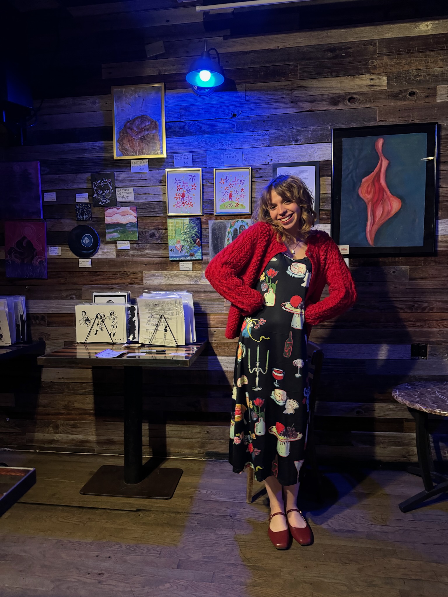 One of my favorite memories is from last summer, when I threw a art show at a local comedy bar, Wide Right. I called it The Purge— a collection of the past five years of paintings, along with a print series I had recently completed. The centerpiece was an 18×24 chalk pastel drawing of an abstracted labia. In the moody bar lighting, it created a unexpected contrast that drew a lot of attention from the comics performing that night. One of them, Addie Lynne—who’s now a good friend—bought it almost immediately, saying, “This is the cheapest vagina I’ve ever bought for myself!” The piece became a fixture in the bar and was often referenced in comics’ sets until Wide Right sadly closed in December 2024.
