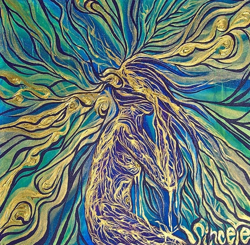 I have been creating since childhood. Growing up in Denver, I decided to go west in 1996 and see what California had to offer. My professional life began at 19 as a freelance photojournalist for periodicals in San Diego County. Shortly after, I met my long time muse who built collosal canvases for me. I was slightly intimidated by the 6’× 9′ canvases. That intimidation quickly subsided and I realized how addicting it was to produce these large canvases . Soon I would move on to getting commissioned murals. Acrylic paint has been my main medium although I have completed many smaller pieces with oils.