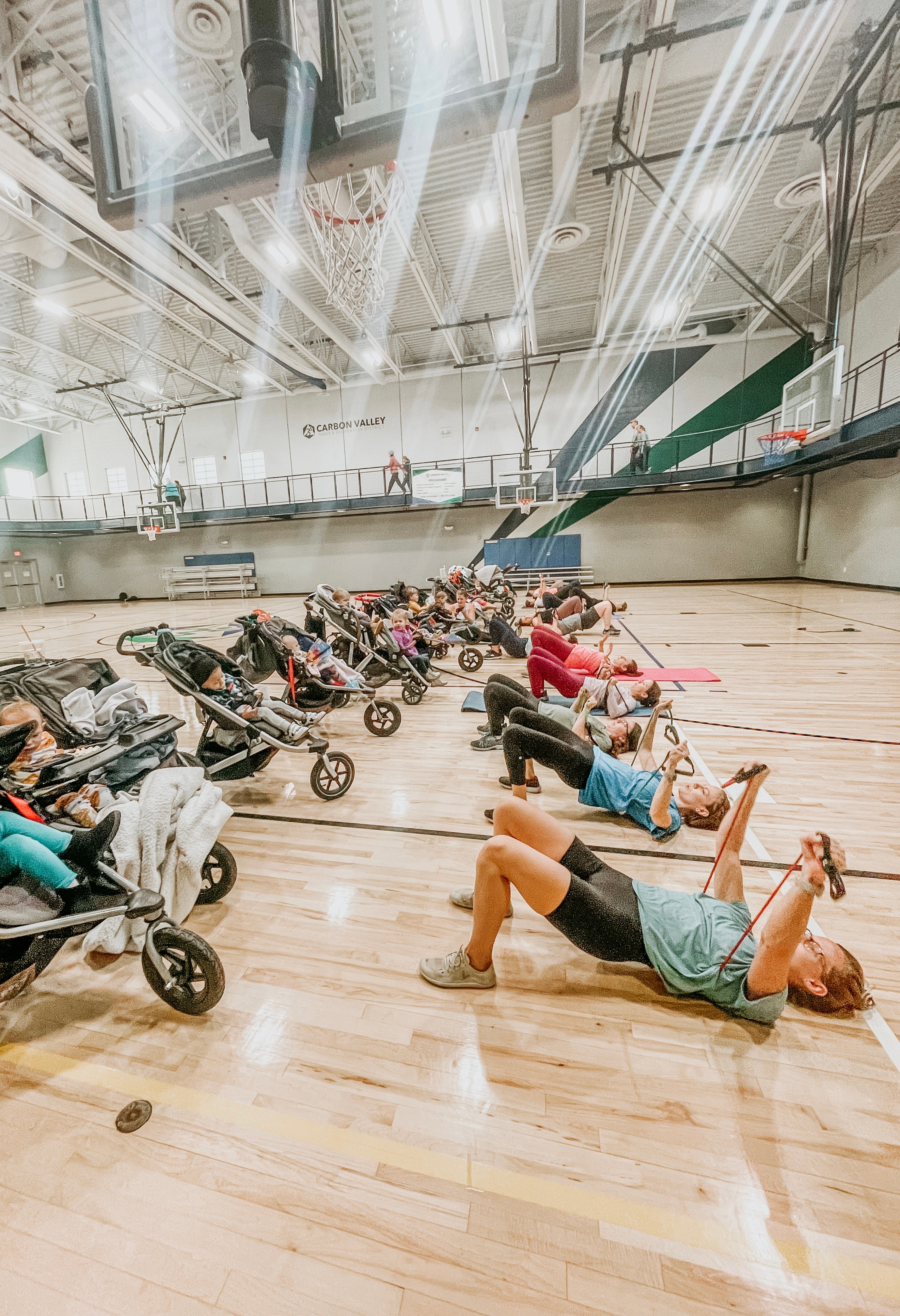 What I specialize in is making fitness work for real mom-life. Our classes are designed for moms with strollers, moms without strollers, pregnant moms, working moms, stay-at-home moms — truly anyone who needs a place to feel strong and supported. I’m known for fun, effective workouts and a coaching style that’s upbeat, encouraging, and very real.