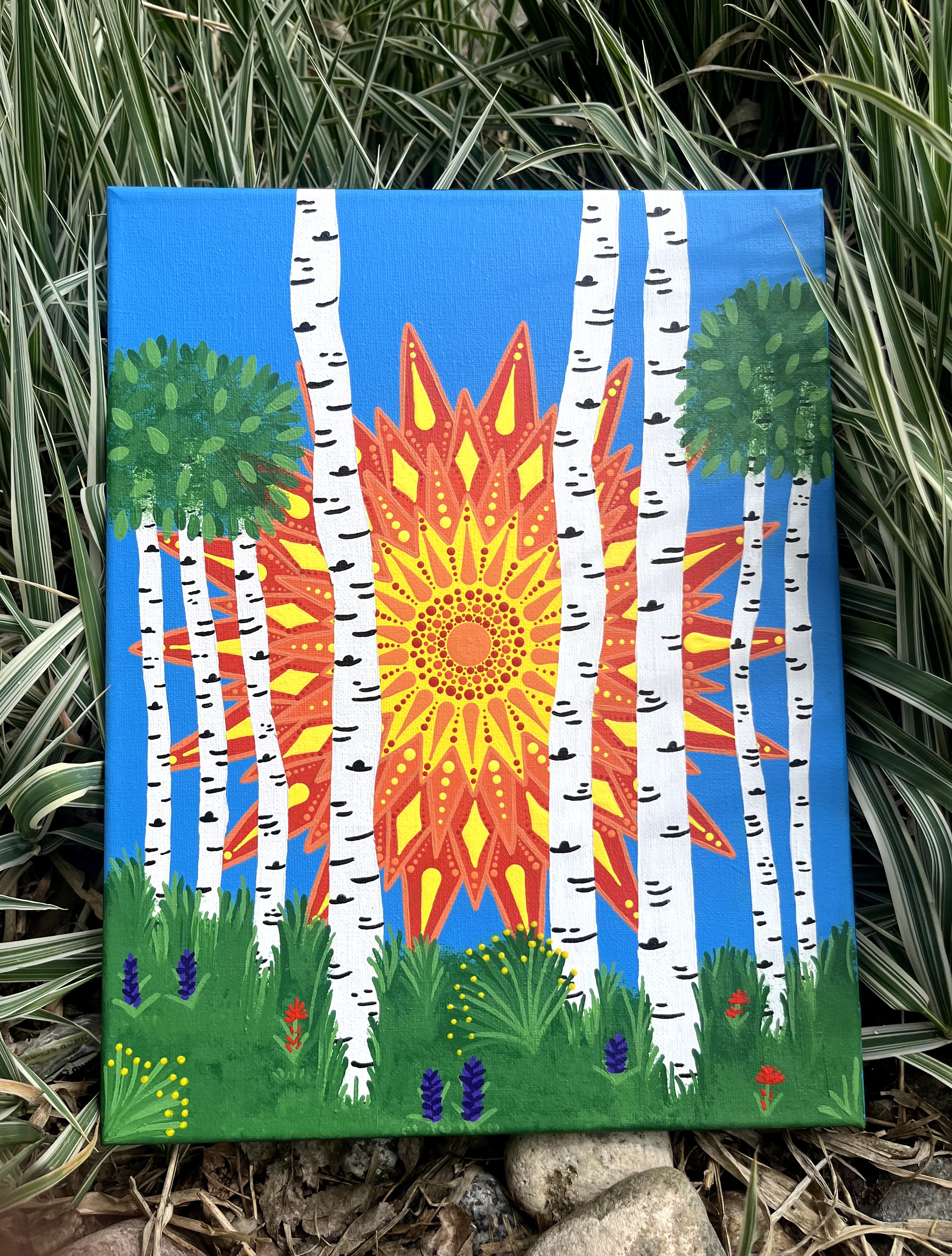 My creativity and love for the arts is really rooted in my crafty family – from hand made quilts and woodworking to home made crafts and stitching, my family was always creating for each other using their talents. It was an inspiring way to grow up! While my early life revolved around my love for dance, I never stopped making and creating handmade crafts throughout my life, mainly as gifts for family and friends. Though, in recent years I have taken the dive head first into painting and with some inspiration and encouragement from a great friend, Sweet Roots Designs was born in 2024. I now spend a lot of my free time creating bold, bright, colorful designs rooted in the basics of mandalas with my own twist. I have officially returned to my creative roots!