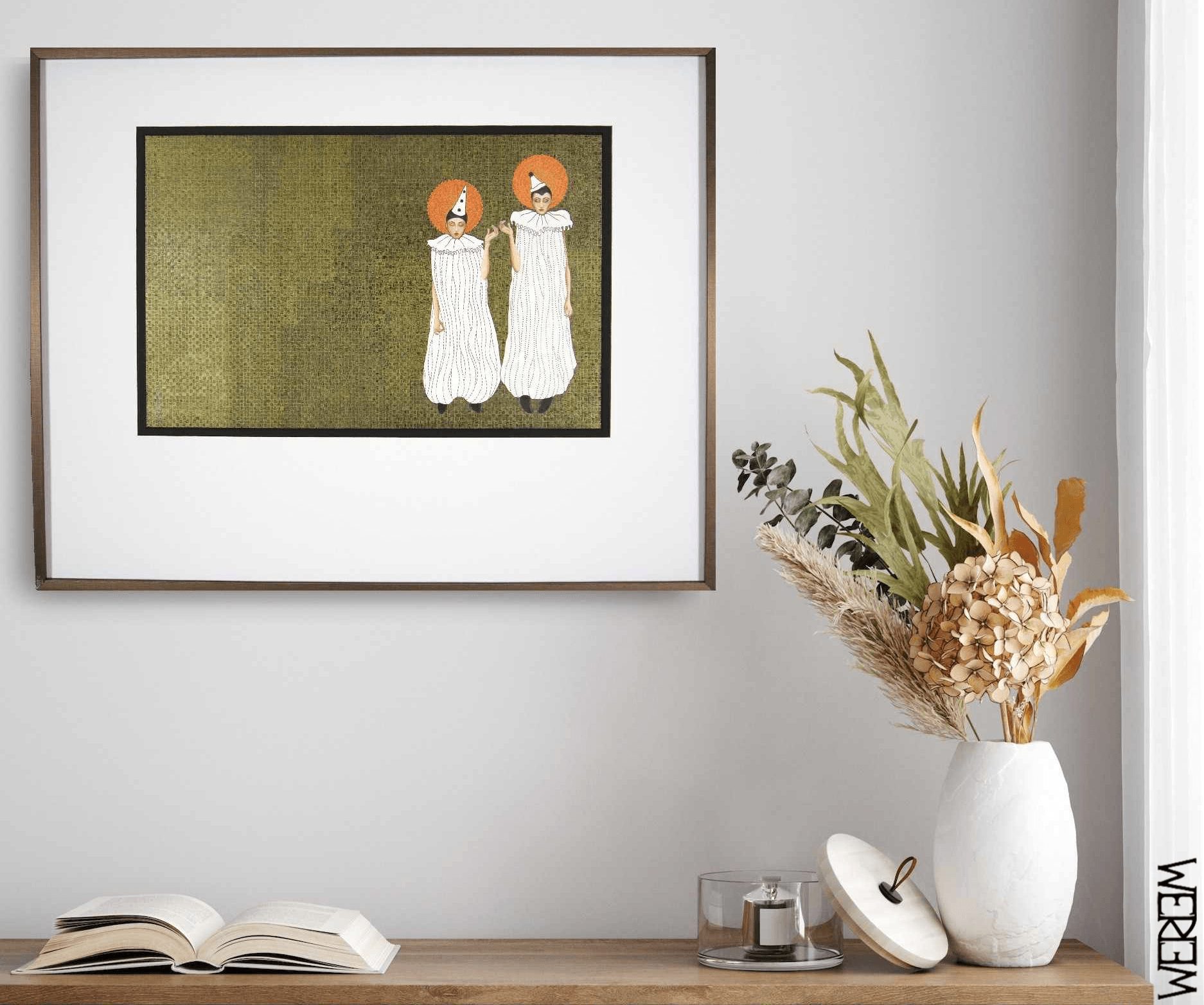 My art often features characters set against surreal, intricately patterned backgrounds. I draw inspiration from the performing arts and history. To me, life can sometimes feel like a poem, a game, or a play. Through my work, I invite viewers to engage with their imagination and their inner theater. A major highlight this year was my first solo exhibition at the Alliance Française in downtown Chicago (October 9 – December 14, 2024). The new collection, centered around Pierrot, the iconic French character from commedia dell’arte, whose poetic melancholy has resonated with me since my youth, was very well received. I’m humbled by the positive response from the Chicago audience, who seemed to deeply appreciate learning about Pierrot and his lasting influence. It was truly rewarding to share his evocative presence with them. Now, I’m excited to fly to Los Angeles for a group exhibition and begin working on my next Chicago exhibition once I’m back.