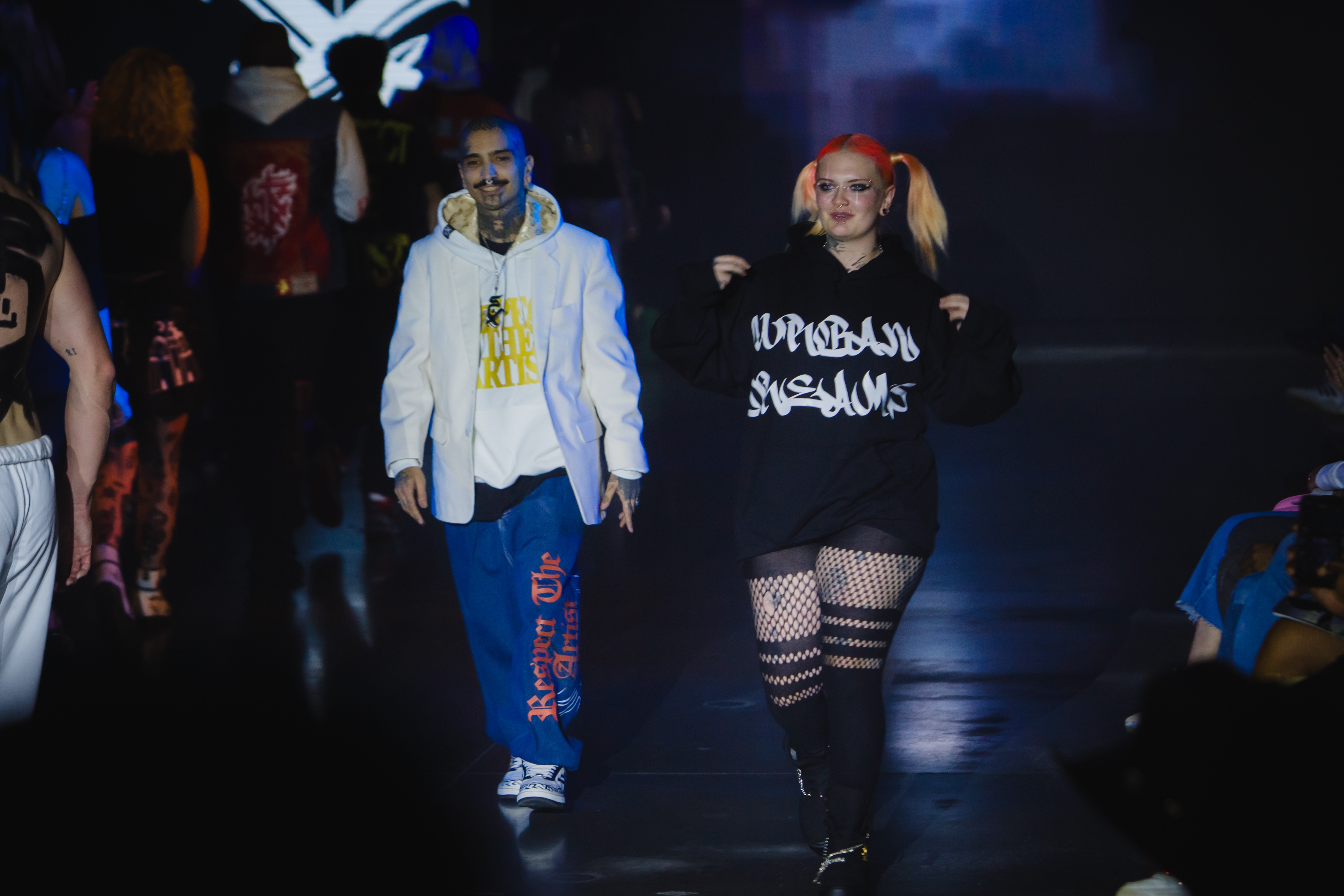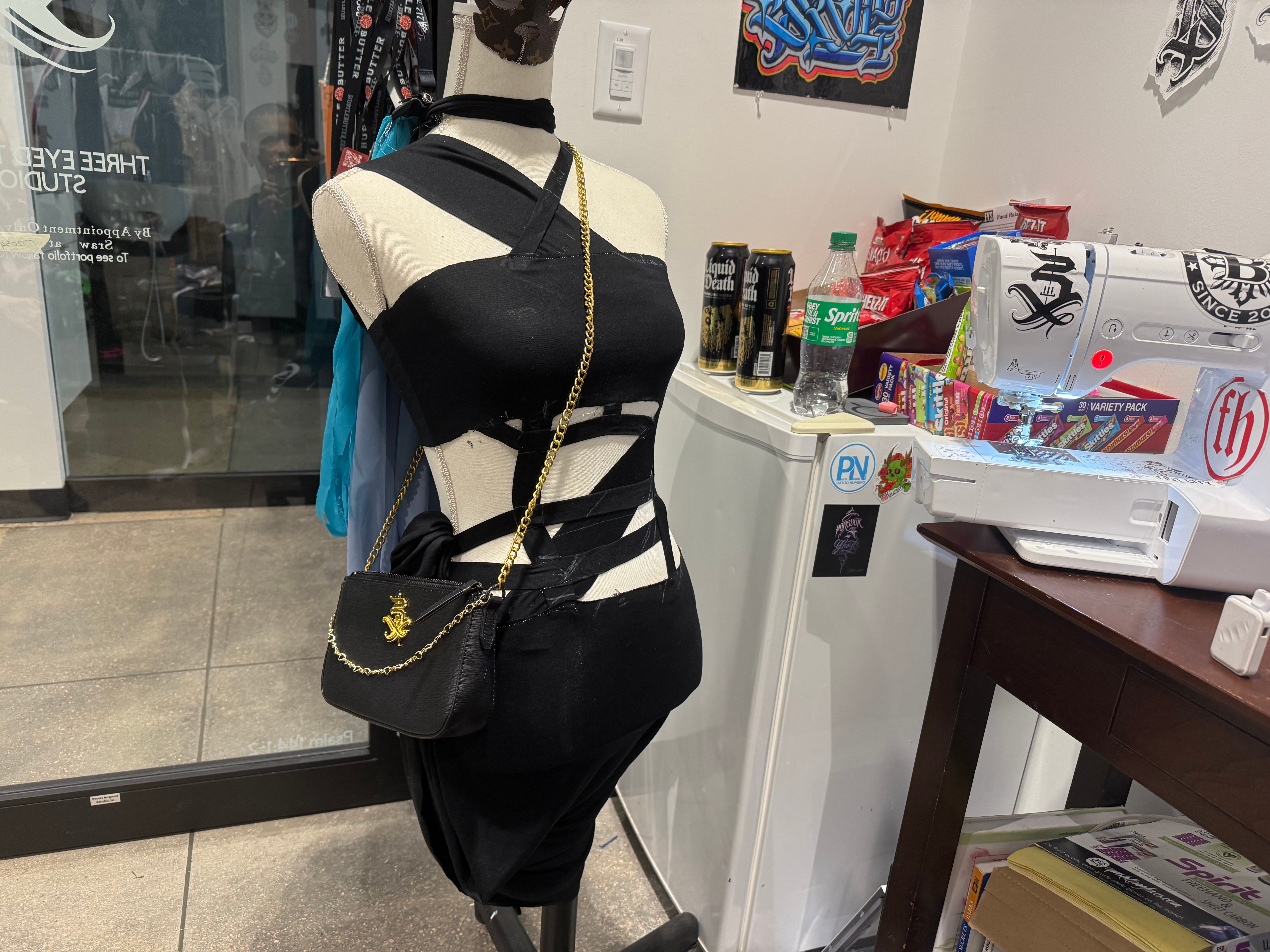 In 2024, we took a bold step into the fashion world by entering our first emerging designer battle—and won crowd favorite. Our handmade pieces, which ranged from dresses to bulletproof vests, turned heads and proved that artists from the tattoo and piercing world could hold their own in high-end couture. We even debuted our first shoe line during that show, making a statement that was both edgy and unforgettable.