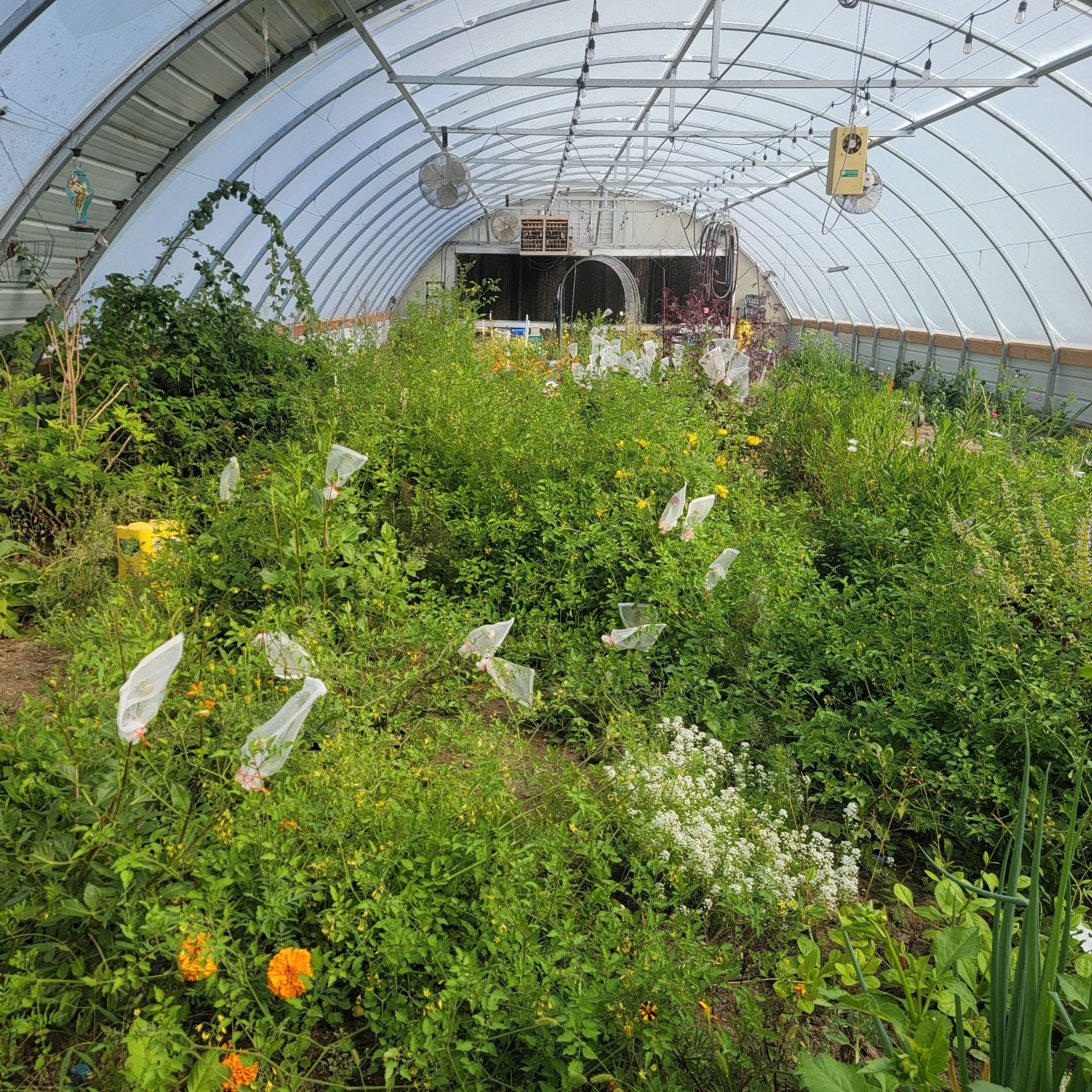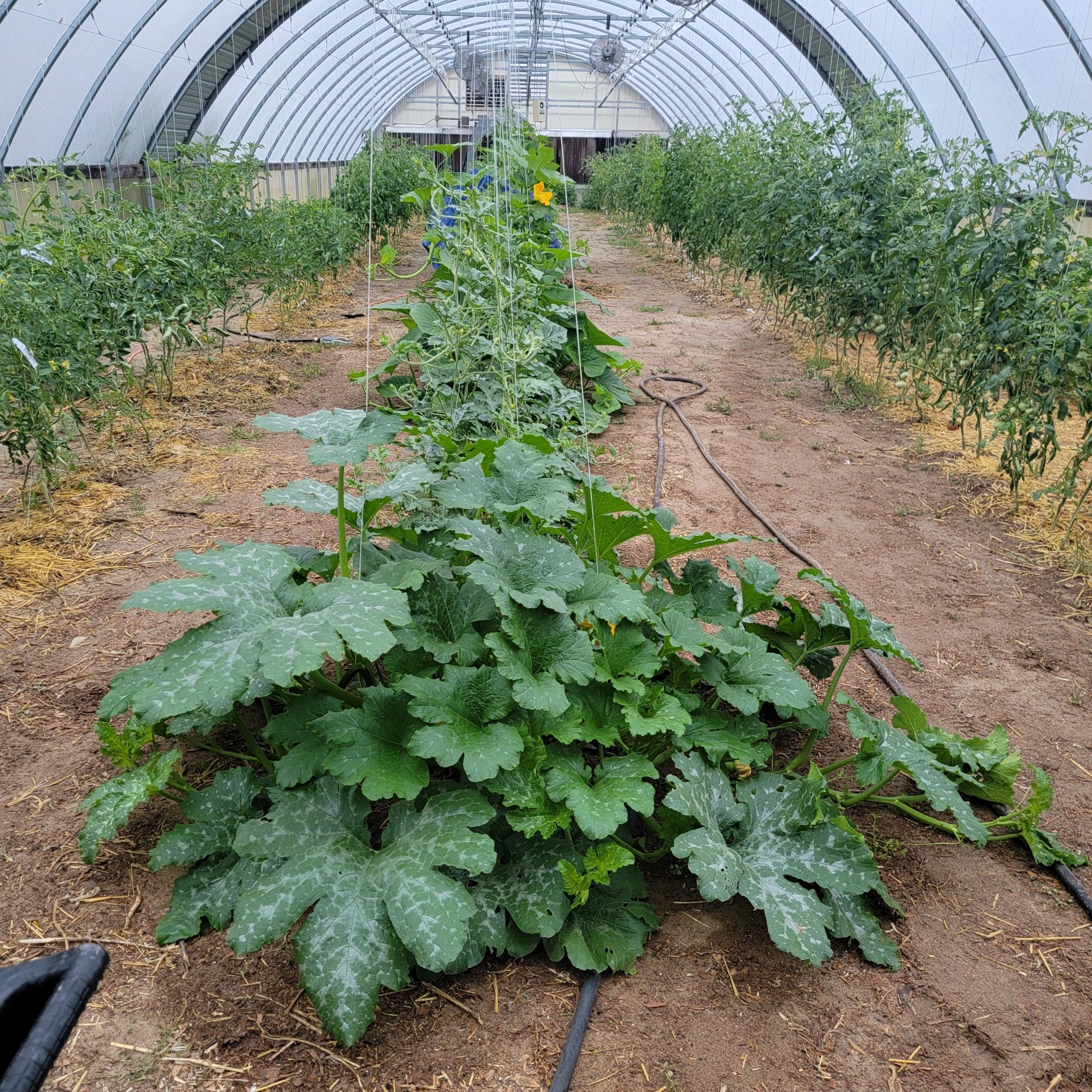 This year the weather has been our nemesis as 2 of the 3 greenhouses were ripped open by 100mph winds. The damages set us back a month and a half in our hopes to open a month earlier this year for seedling sales, and the cool temps and grasshoppers made everything else feel insurmountable at times. Ironically last year we had the produce and not the people, while this year we had the people but not the produce. It’s still been a good year. We are taking the lemons the storm gave us and making lemonade! By not repairing the 3rd greenhouse, we will use it for pumpkins and squash so that local pollinators can get to the plants and reduce my hand pollinating efforts. We are still going to repair the front half of the first greenhouse this fall and then hopefully can replace the plastic on the second greenhouse next year.