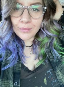 I am a vivid hair color and extension specialist! I make peoples hair into rainbows and mermaid hair and make them feel AMAZING while I do it! I love doing bright neon colors, split hair and weird stuff! Anything extra weird and out of the ordinary makes my heart sing! People always tell me when they see my work that they love how bright and saturated the colors are! I feel like a HUGE part of that is the color line I choose to use exclusively, Pulp Riot. Their colors are by far the brightest, most saturated as well as mixable color line I’ve ever worked with! I also love that they are cruelty free and vegan, sustainability is such an important aspect of what I do! This industry creates over 800 pounds of waste a MINUTE!! So recycling is super important to me, I clean and recycle everything I can and am working to find more ways to do so! One thing I thing that really sets me apart is I try to be as transparent as possible about all things with my guests and try to work with each and every person to get the hair of their dreams. I aim to be as inclusive as possible and want people to feel safe and relaxed in my space! Making this a full experience and not just ‘getting your hair’ done is the most important thing to me. Having a tailored experience for each client in a beautiful private setting makes ‘getting your hair’ done so much more. I want to build connections with these people, sometimes were spending 6-8 hours together and the last thing I want is for someone to feel awkward or unwelcome for that long so having those connections are so important. I have goals to expand my knowledge of hair more and hopefully expand my craft even more exclusively. Educating is my next passion and I’m excited to see where that takes me!