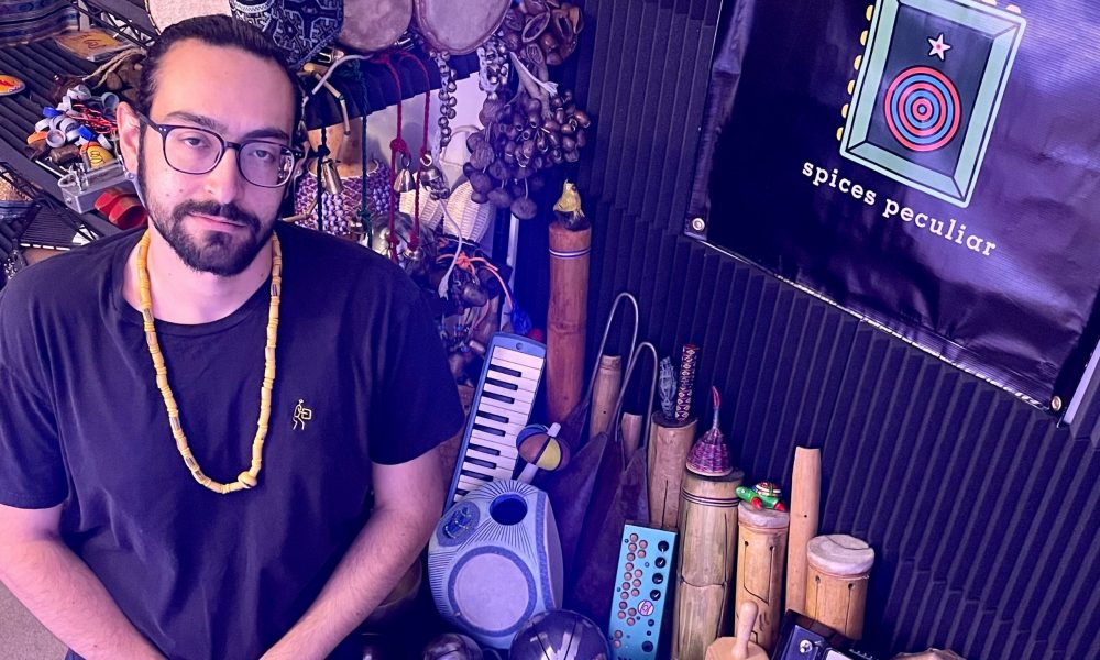 Spices Peculiar started performing in Pittsburgh in 2014 and 2015, the last few semesters for me at the University of Pittsburgh. The live shows and early albums were always completely improvised and consisted of myself and drummer, Steve Ippolito. I usually played electric guitar and the Critter and Guitari Pocket Piano through a looping-oriented pedalboard. Throughout the next few years, my percussion collection grew and I began focusing on more “produced’ albums.