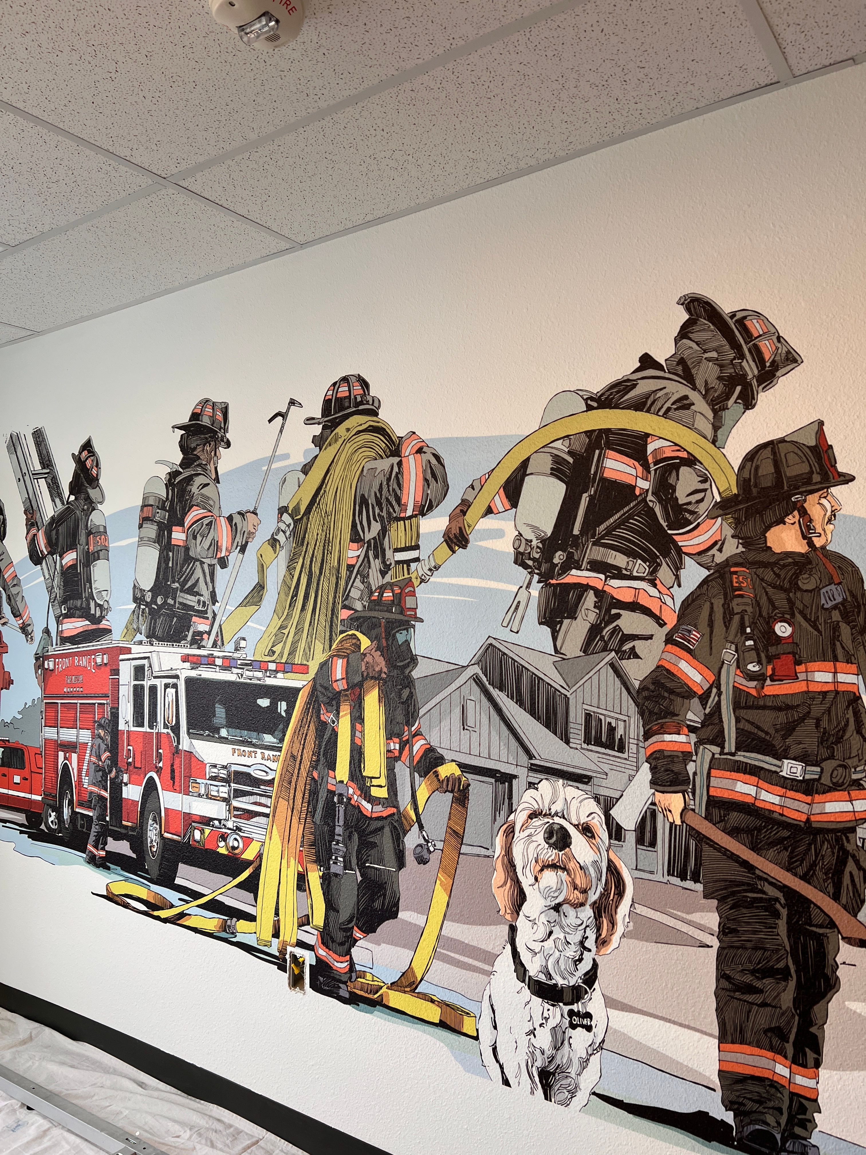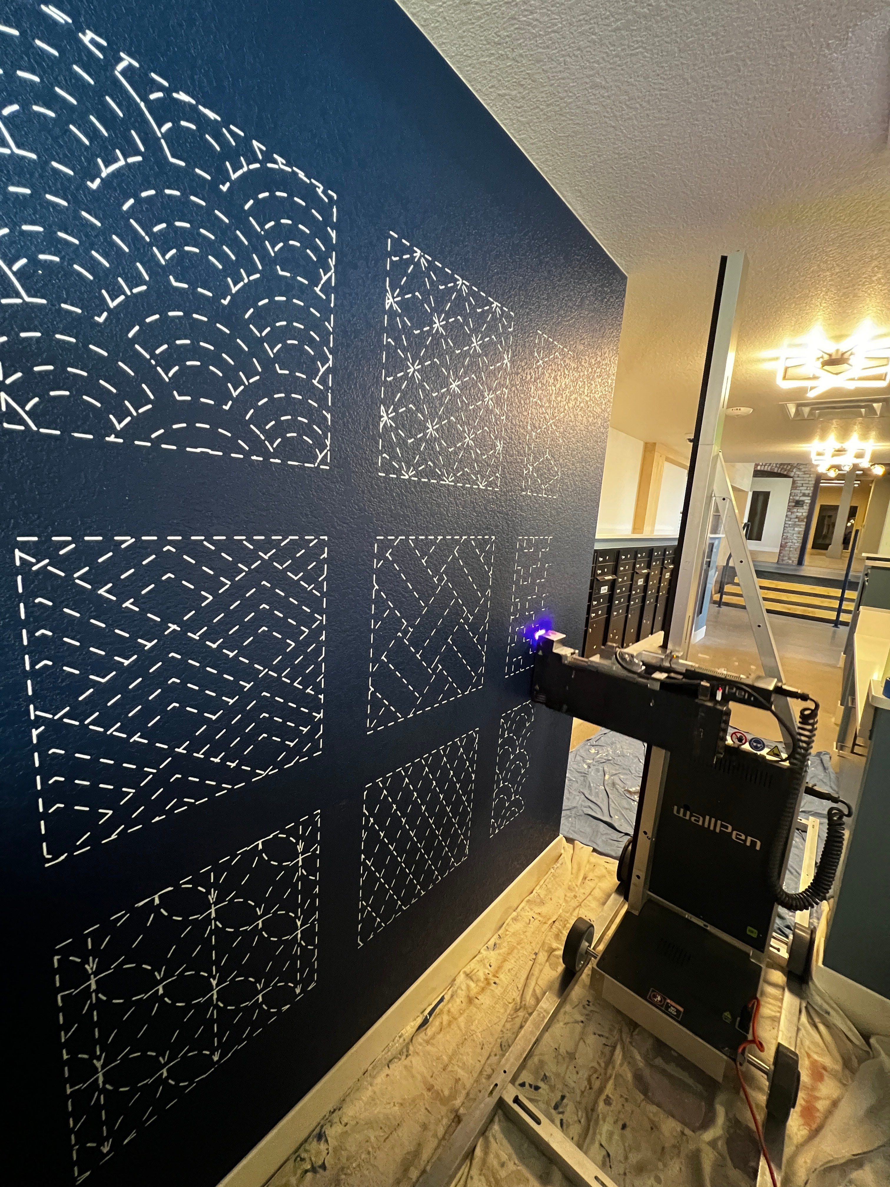 Cue the Google rabbit hole. Turns out, it does exist: a vertical printer that lays down crisp, durable graphics directly on nearly any surface—brick, concrete, drywall, you name it. No seams, no paste, no weeks of prep. But there was a catch: no one in Colorado was offering it. Furthermore, it doesn’t require skim coating and works great on texture!