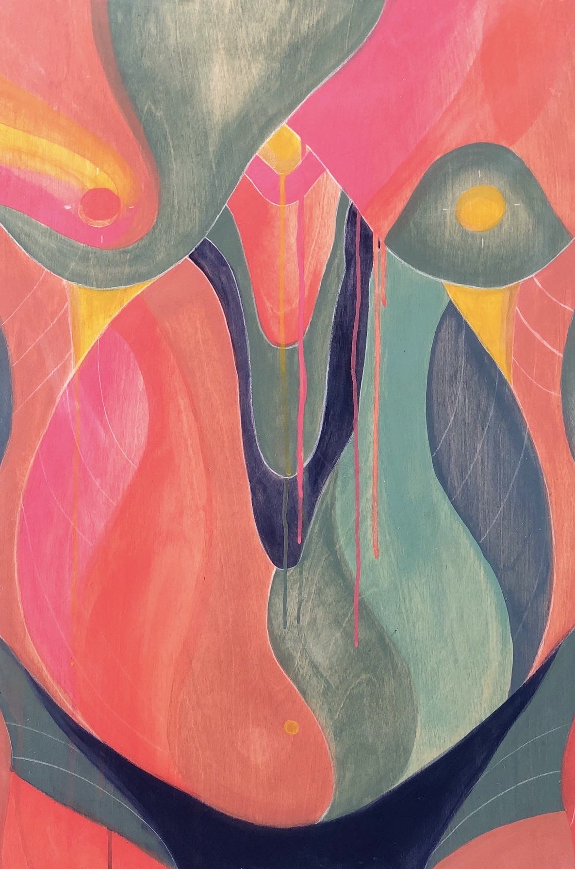 I love creating abstract paintings, especially on reclaimed wood. Abstract work is one of my favorite forms of expression — I’m not a planner by nature, so it feels incredibly refreshing to create without a set outcome. To surrender to my subconscious and see what emerges. When I was pregnant with my daughter, I created a whole series for a solo show just weeks before my due date. It was called Womb With A View, and to this day, it remains one of my favorite bodies of work. That series marked a shift in my style: I moved away from hard edges and right angles and began embracing more fluid, organic lines. It felt like I was tapping into the divine feminine and letting my subconscious lead.