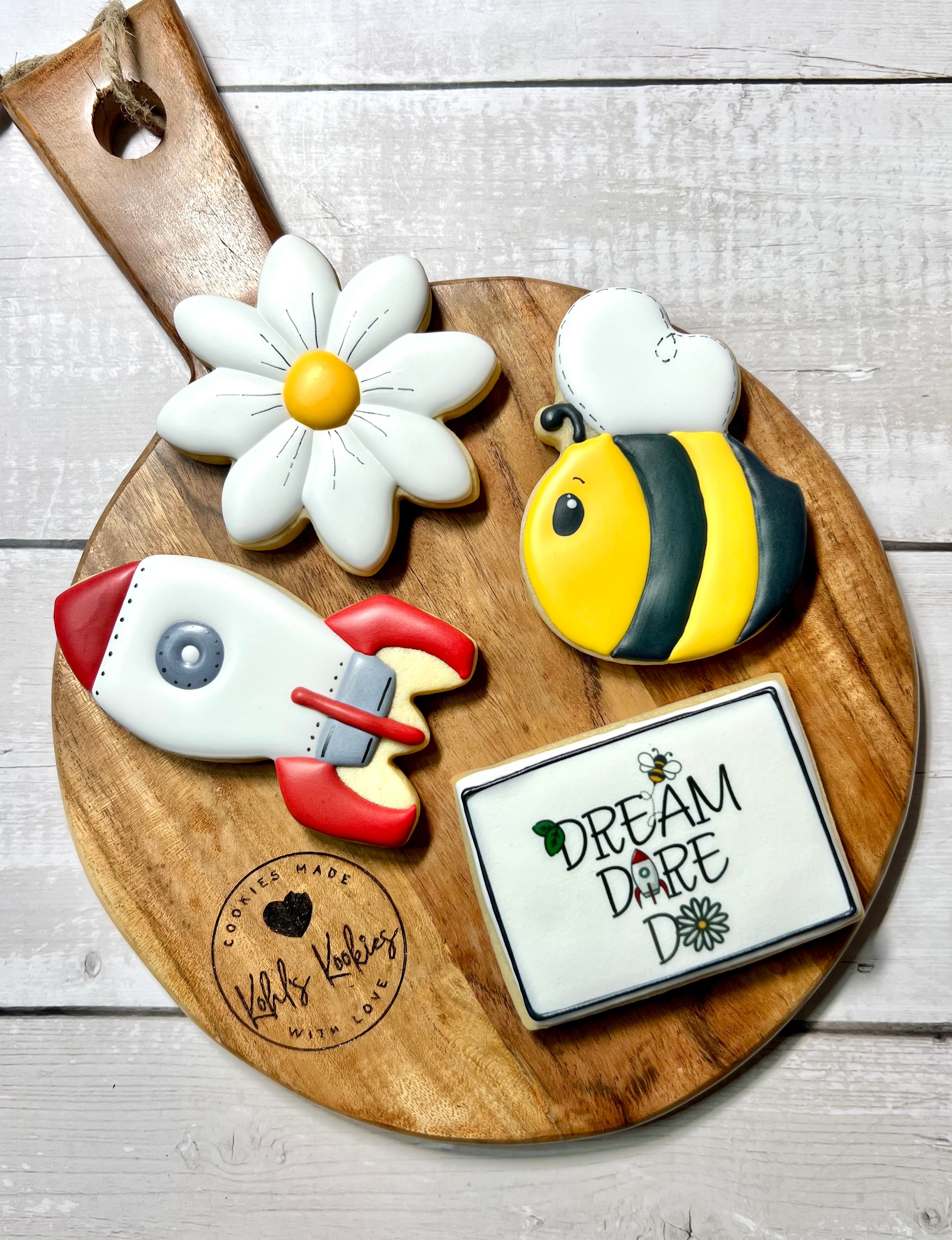 I have always had an artistic side that I tried numerous ways to express. Over 25 years ago I dabbled in decorating cakes. That brought great joy, but I had a young son at the time which was priority. So baking went on the back burner. Between the years I picked up water color painting and photography. As they were fun, I didn’t have the fire to pursue those as a business. It wasn’t until the pandemic, like many people, I found myself spending more time at home and seeking ways to satisfy my creative outlet. I stumbled upon an online cookie decorating class. I was intrigued yet cookies in the past were always hard for me. I could never get them to hold their shape let alone taste good. With some new tricks and techniques, I baked my first batch. I was so excited that they kept their shape AND they tasted amazing. I definitely found my niche. As I rolled out the dough and decorated each cookie, I felt a sense of comfort and nostalgia. I wasn’t stressed. I began experimenting with different flavors and designs, turning simple sugar cookies into little works of edible art. It was therapy for me. It was very rewarding. And every batch taught me something new.