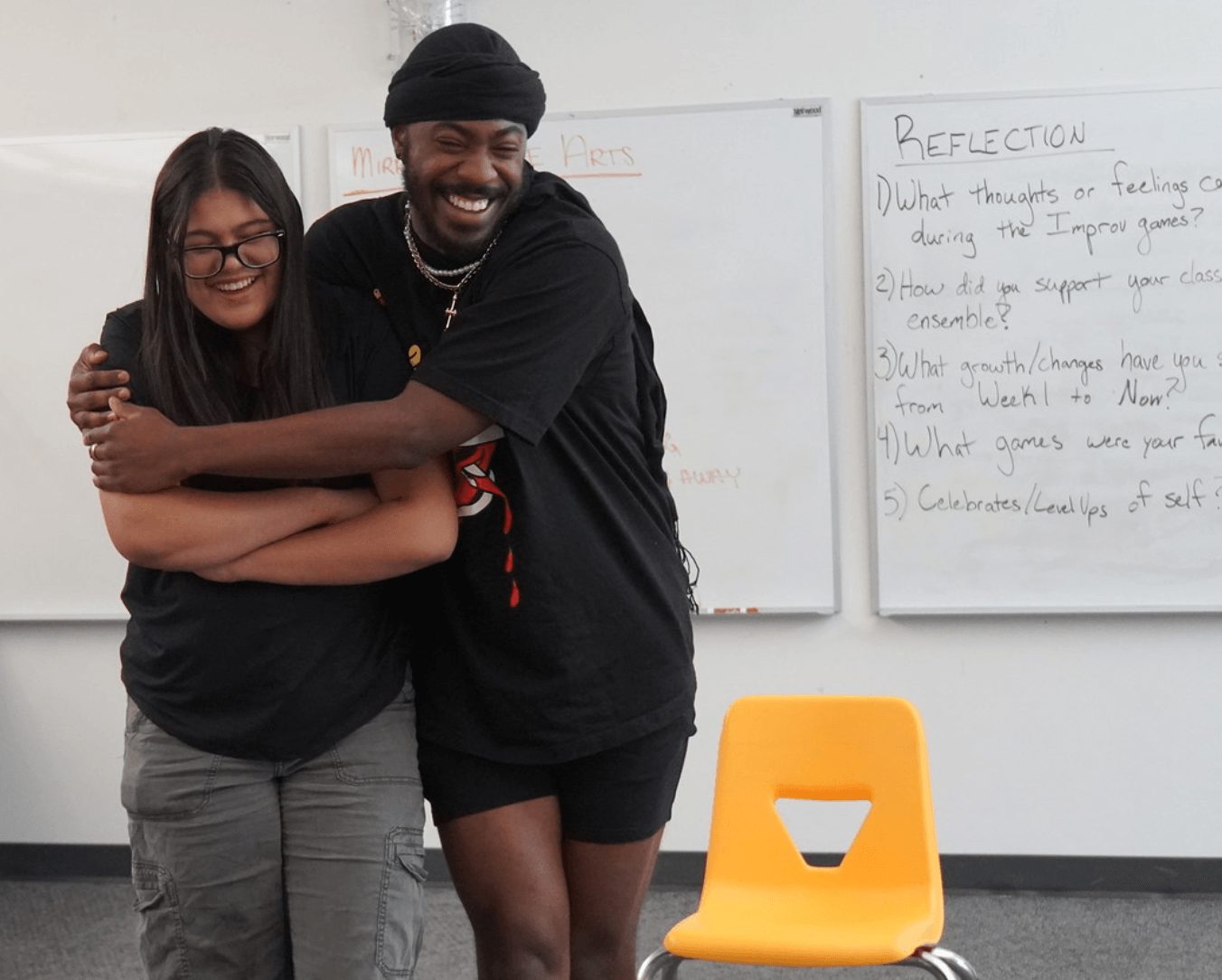 We consider our work the collective liberation of all. We create impact and collective liberation through three areas of approach: Prevention, Intervention, and Reintegration. We do this work by bringing Restorative Theatre to youth and youth serving adults in schools, community organizations, and detention centers. Through Restorative Theatre we create spaces of healing and belonging while deepening social emotional wellbeing. Our facilitators are skilled theatre makers, first aid mental health youth certified, with ongoing training in relevant evidence-based practices.