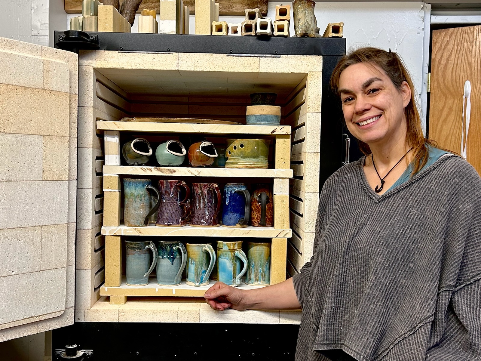 I had always planned to open a ceramic studio and be a full-time artist when I retired. But the pandemic taught me not to wait to do the things I’ve always wanted to do. Live the life you really want, and things will fall into place. I signed a lease on a warehouse space on South Broadway that had been vacant for far too long and spent the rest of the semester making renovations and purchasing the necessary equipment for pottery using the money from the sale of my home. I opened my studio in June 2024, tumbled a bit, and reopened in October 2024.