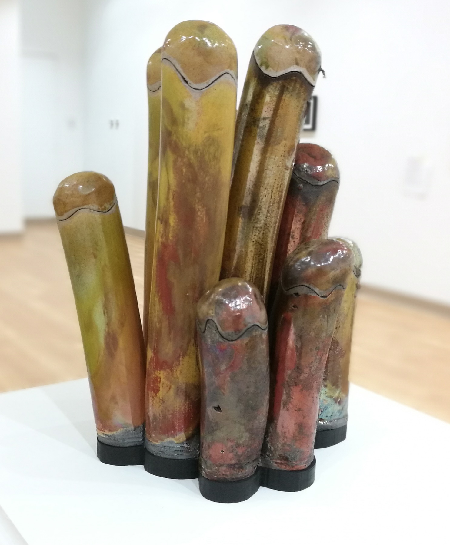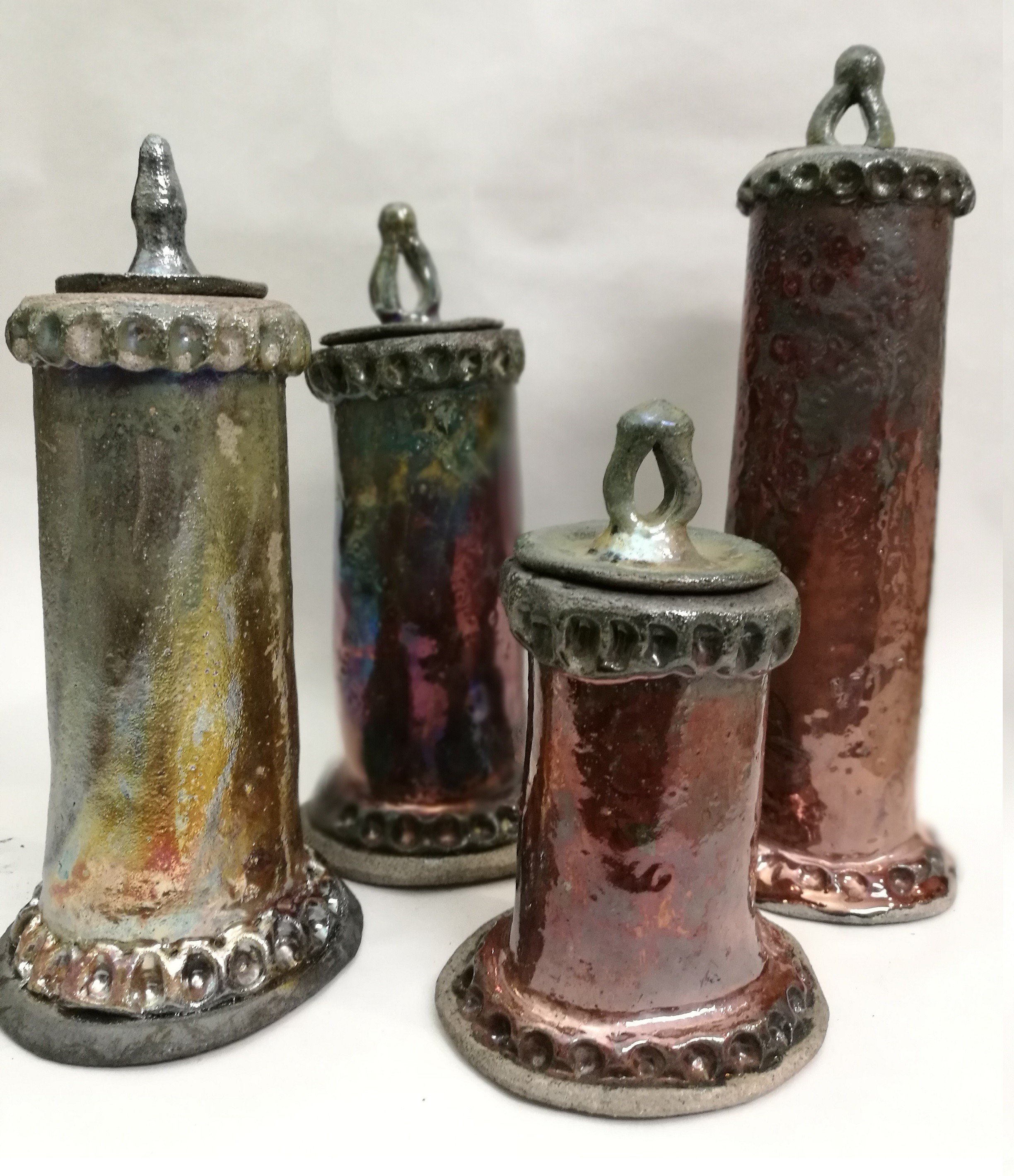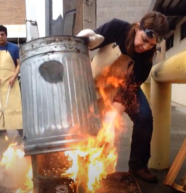 I am obsessed with cylinders like Yayoi Kusama is obsessed with polka dots. I make a dozen cylinders on the potter’s wheel every day! I keep them in an airtight container and use them for mugs, honey pots, and garlic keepers. The work I enjoy most is making long, thin cylinders. My current work is making giant 30 oz beer steins. My idea is to have a mug that is big enough to keep you from having to keep getting up for a refill. I’m always impressed with how lightweight my functional pieces are. I’ve always felt that if a piece feels comfortable in the hand, it easily becomes the most used piece of dinnerware. I sell my steins at music and beer festivals across the country. However, I’m most known for my Raku pieces. In an exhibit, you can spot my work from across the room because of the bright copper glazes I use. I love the instant gratification you get from raku. Its faster than a kife fiht in a phone booth. I enjoy working with glaze composition and the way it captures the path of the flames. I am most proud of my raku portraits. These are the most challenging sculptures to fire because, with 20 pounds of clay, they are prone to cracks.